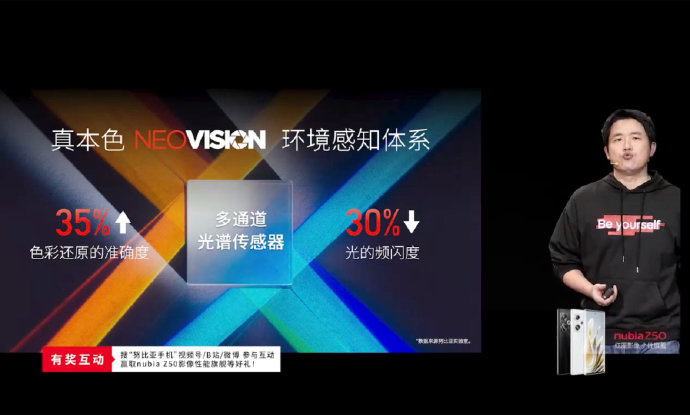 努比亞 Z50 採用多通道光譜傳感器,NeoVision 環境感知系統。色彩還原的準確度提升 35%,結合軟硬件色彩調教能力,照片更加真實自然。光的頻閃度降低 30%,讓照片更加純粹清晰。