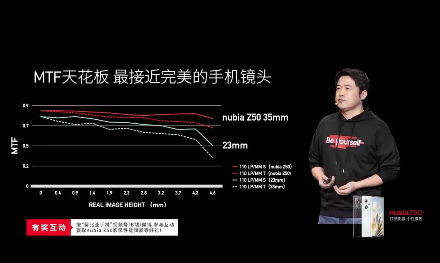 官方稱,努比亞 Z50 在 110LP / mm 頻率下 MTF 值高達 84.2%,即使隨着進光點離鏡頭中心點越來越遠,MTF 值始終保持高水平。其搭載 7P 鏡頭、16 層光學鍍膜,有效抑制眩光,輕鬆拍出通透感。