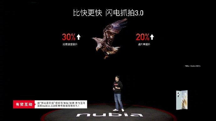 努比亞 Z50 支持閃電抓拍 3.0,拍照速度提升 30%,成片率提升 20%。同時疊加全新超感光追焦,無論主體如何移動,都能實時準確追焦。