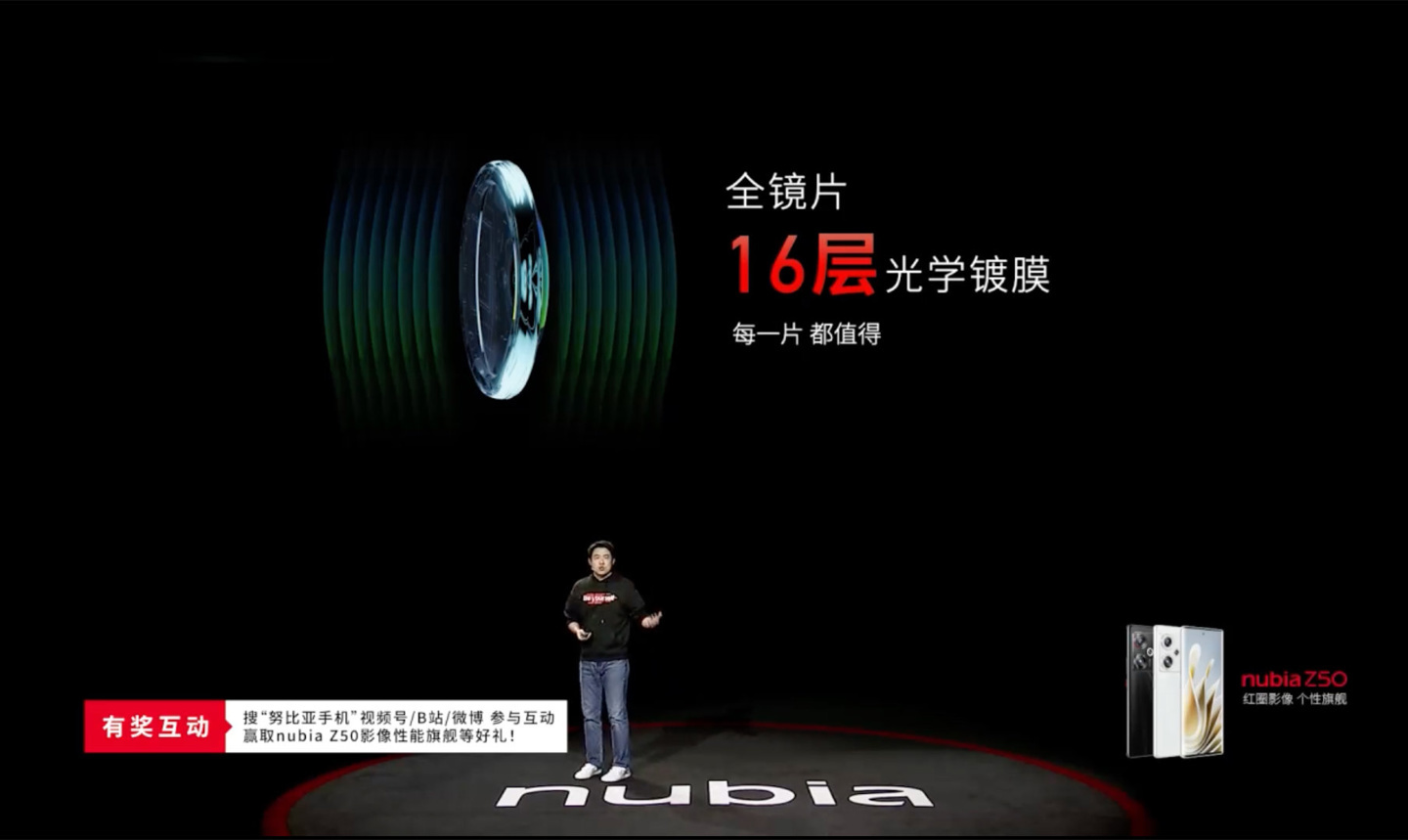 努比亞 Z50 依然主打影像,搭載全新 35mm 定製光學系統,號稱等效進光量領先一英寸的小米 13 Pro。