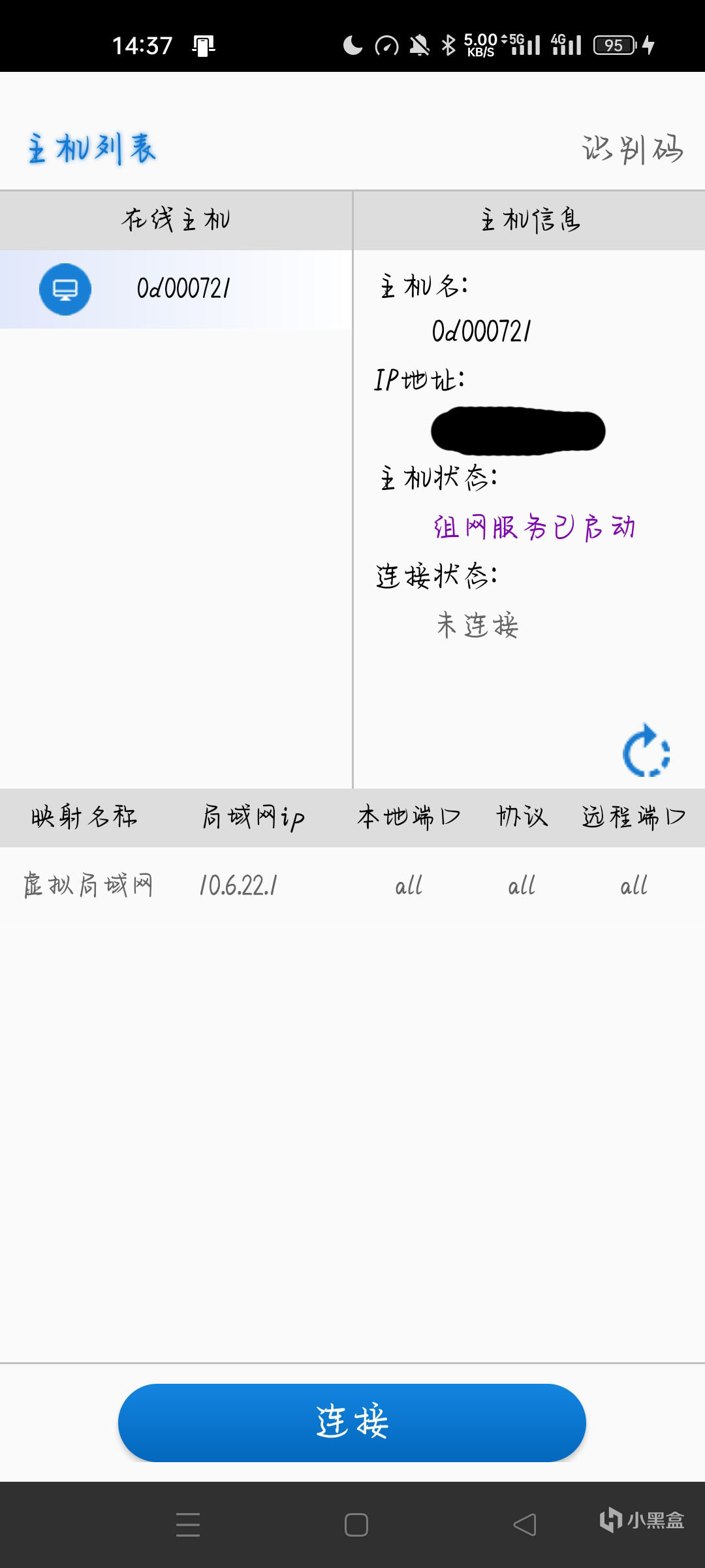 接下來去下載手機端app,安裝完打開並登入,點擊右上角主機,點擊開啓連接,需要同意創建***通道