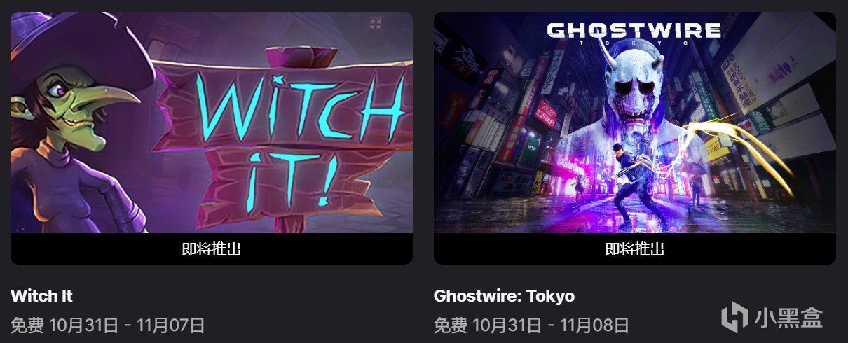下一週贈送的免費遊戲爲《女巫來了》和《幽靈線:東京》,領取時10月31日~11月08日