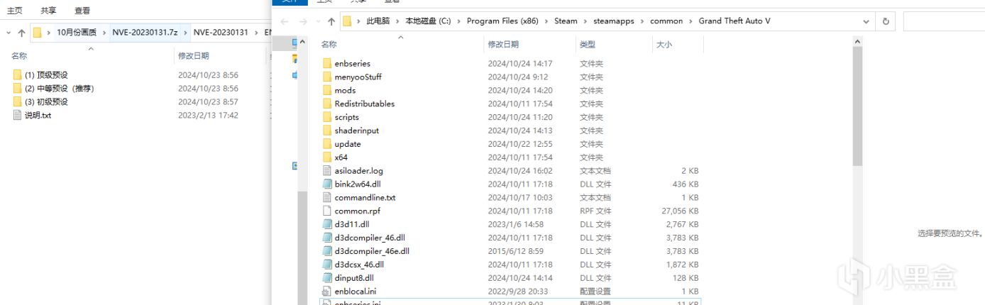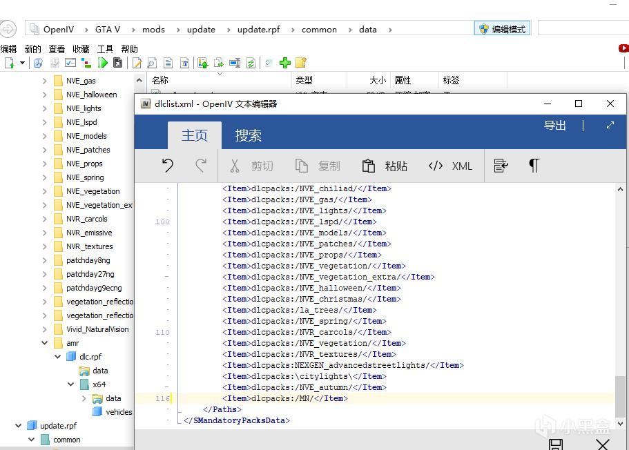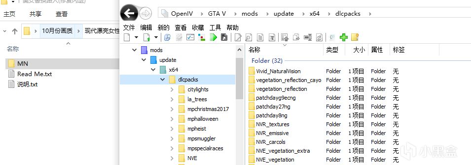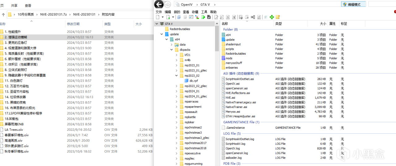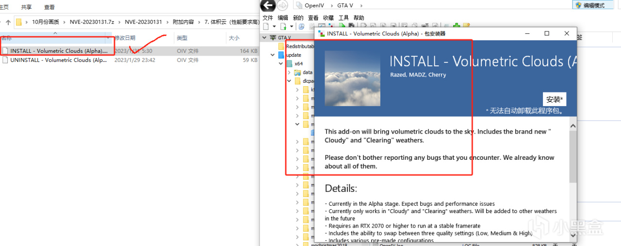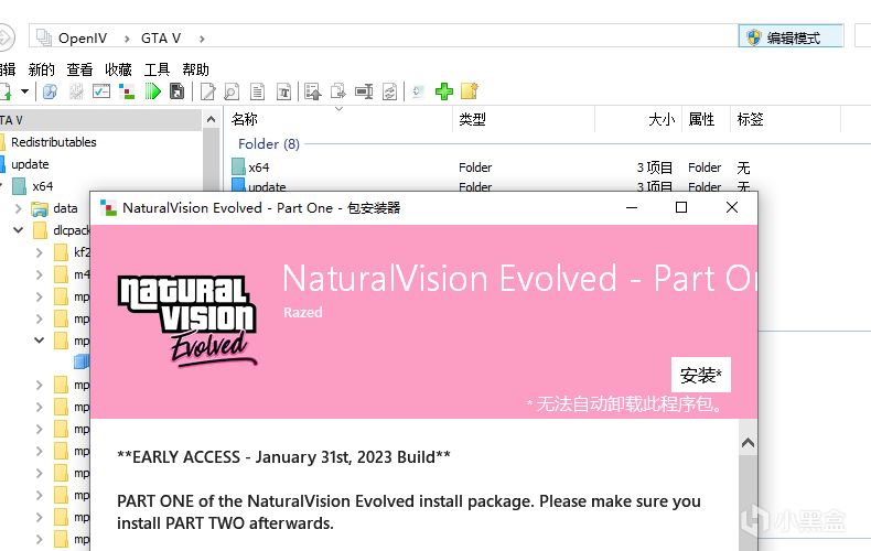 3、打開openiv將文件夾裏面的NaturalVision 安裝包-1和NaturalVision 安裝包-2拉進openiv安裝