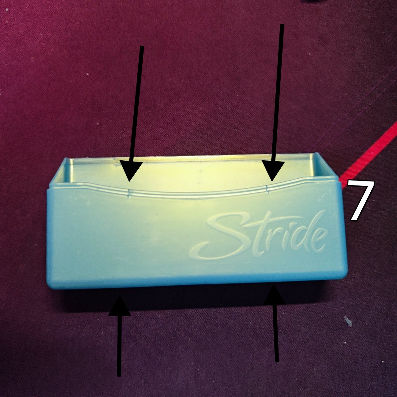 第一步:拿出口香糖盒將上蓋用刀劃下來(注意安全)。注:連接處有凸起需要削平。