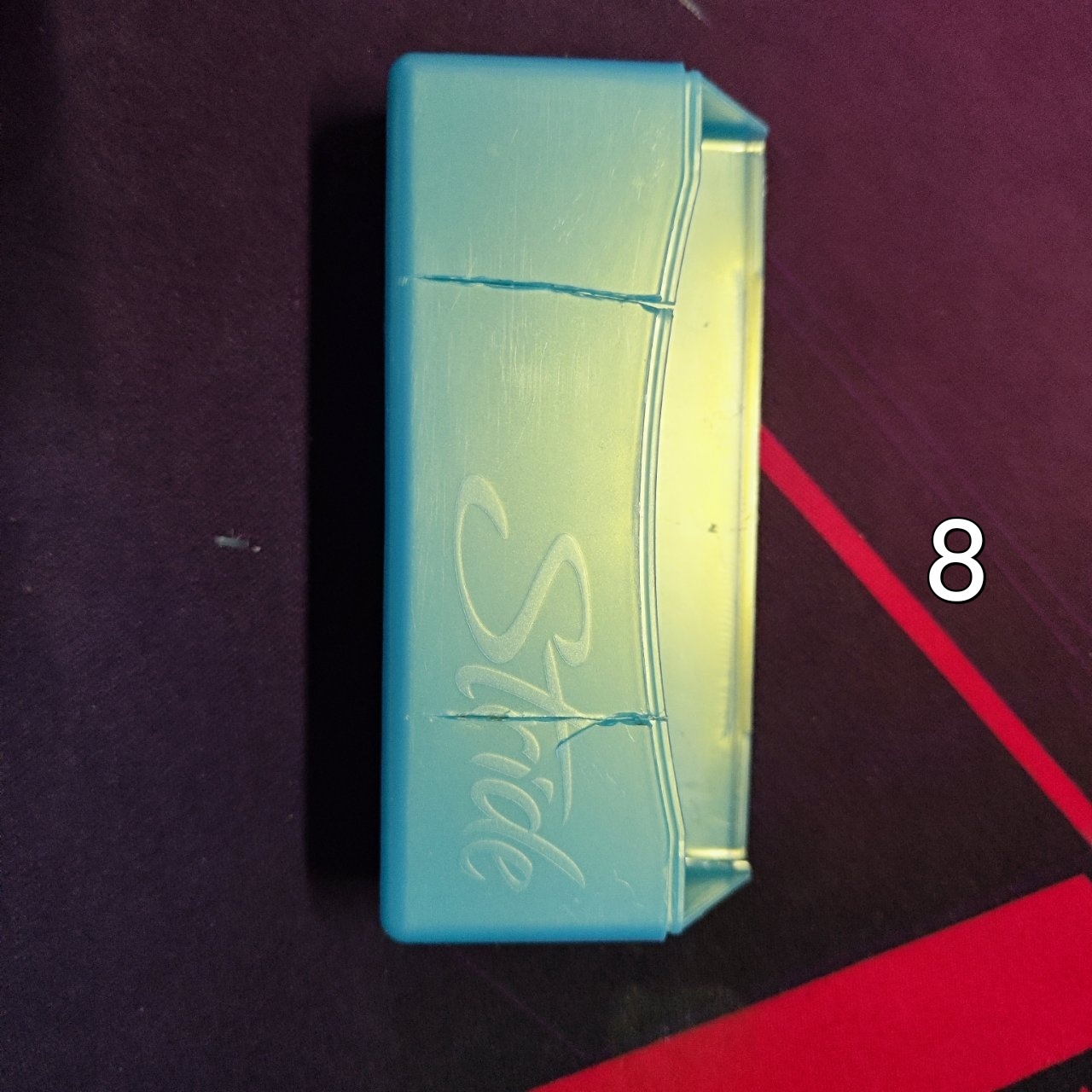 第二步:從兩邊平均向內幾釐米(樓主是向內一坤釐米)劃開如圖七,要劃到底,建議加熱再劃,盒比較硬。(注意安全)