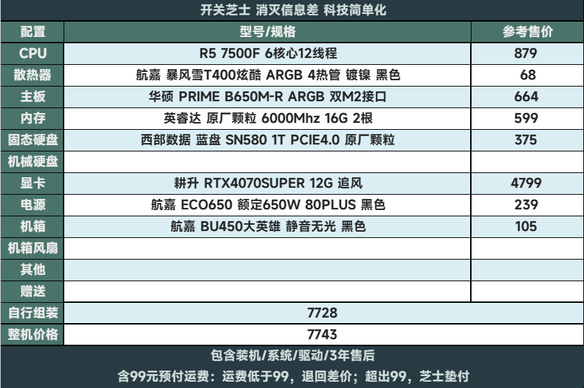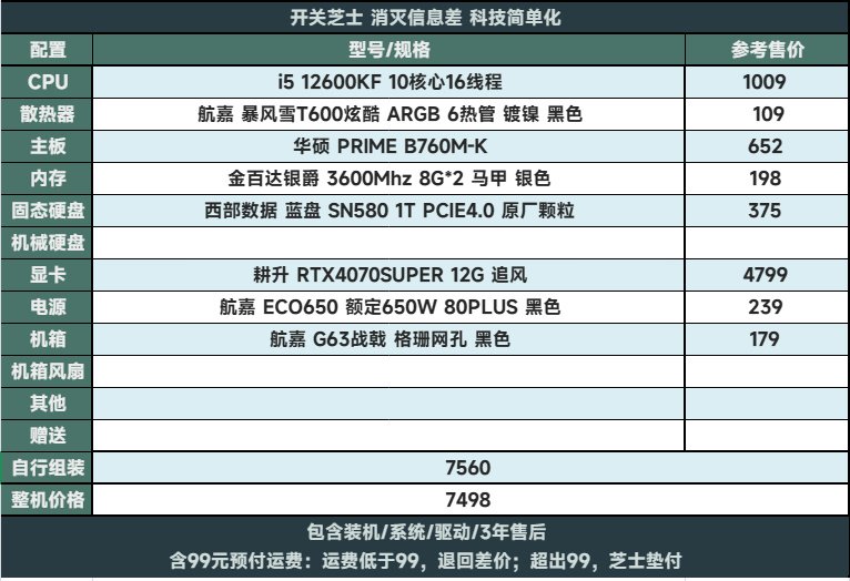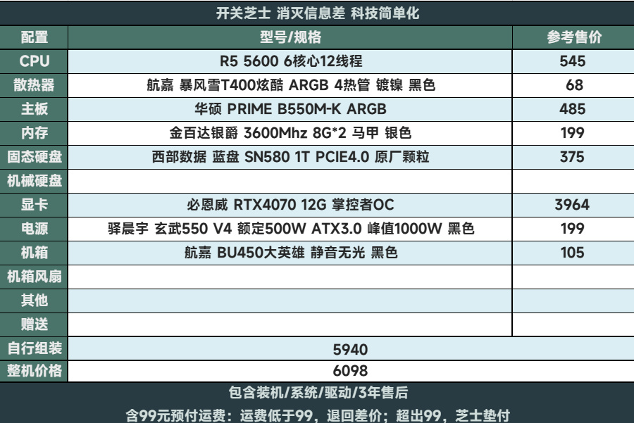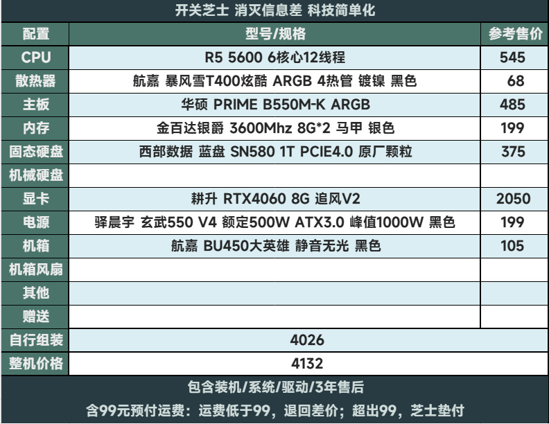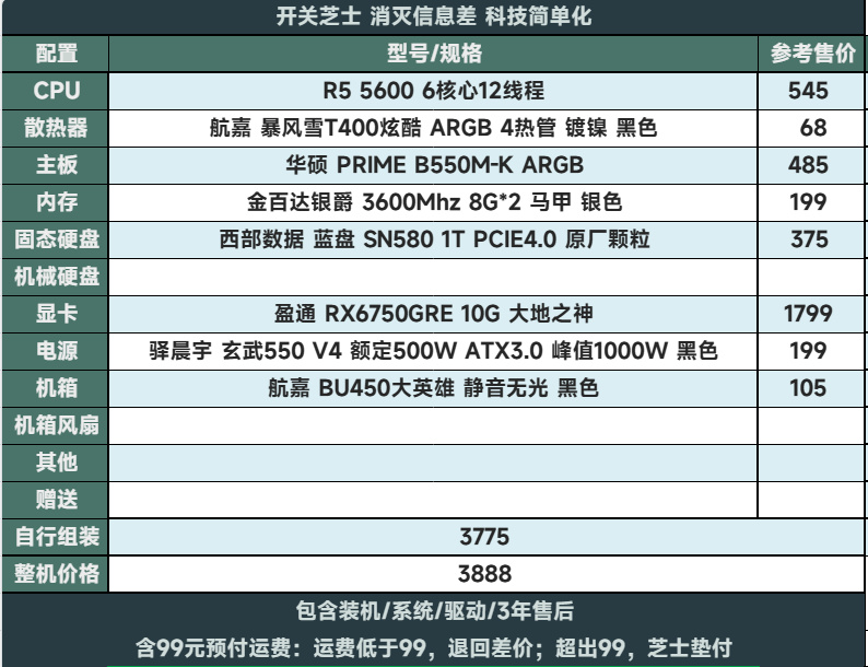 我沒有按照價位去推薦配置,配置思路是:根據自身需求、按照預算對號入座即可