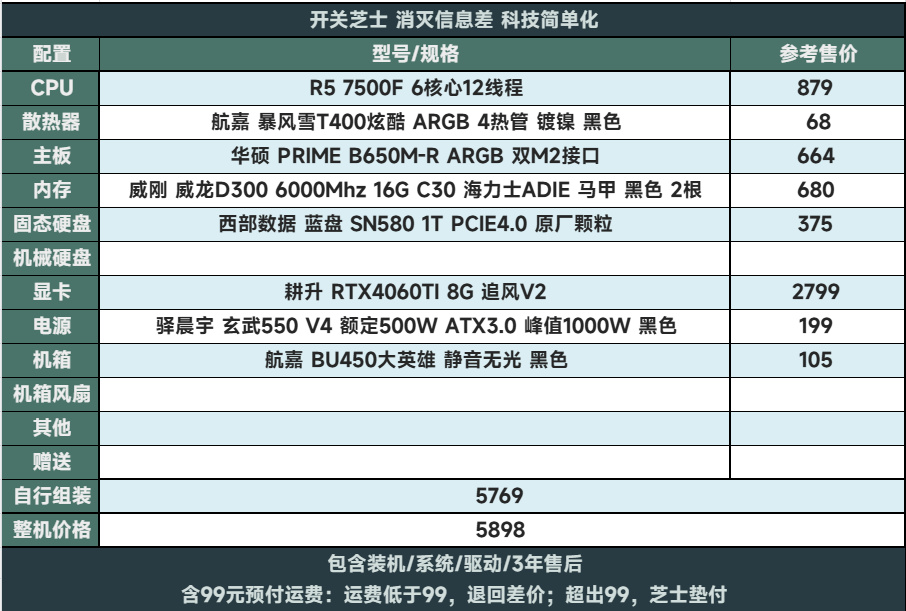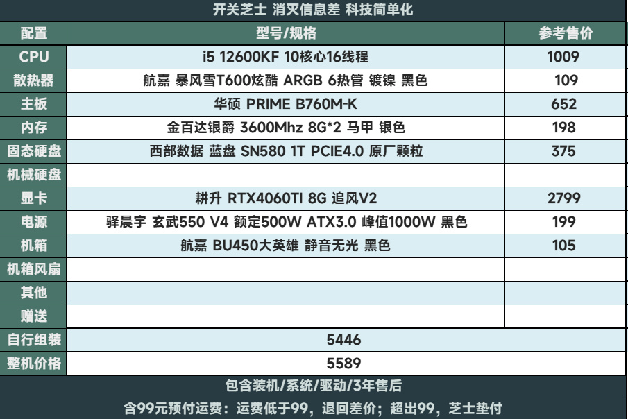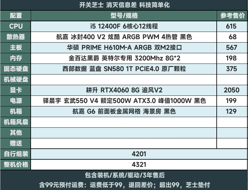 本文主要面向追求性價比的萌新羣體,更高端的配置就沒做了,很多高端配置性能過剩、價格變着花樣收割萌新...
