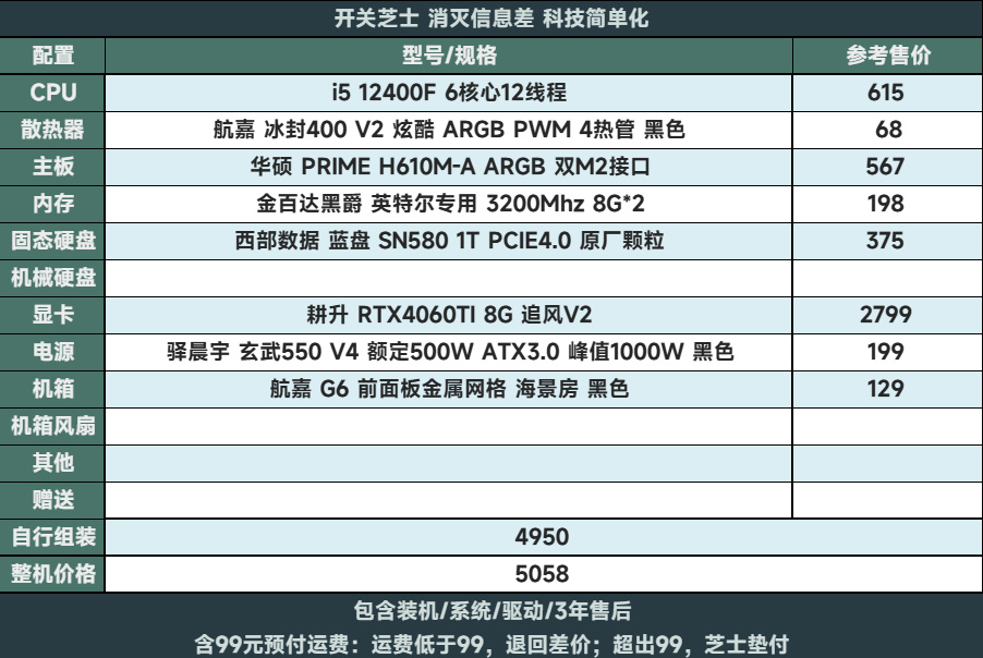 就是前面12400F+4060配置,顯卡換成了4060TI;