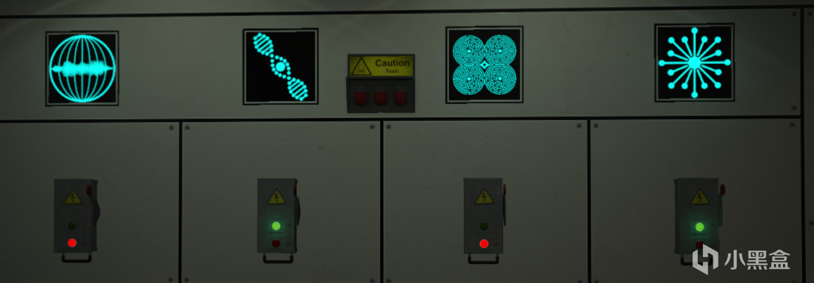 而隔壁存放半成品暴君MK2的房間中有 2 檯筆記本電腦顯示放射狀圖案,您需要第二個拉下對應的拉桿,以此類推,請注意,每次進入實驗室的圖案數量不盡相同,請以您的實際遊戲爲準。
