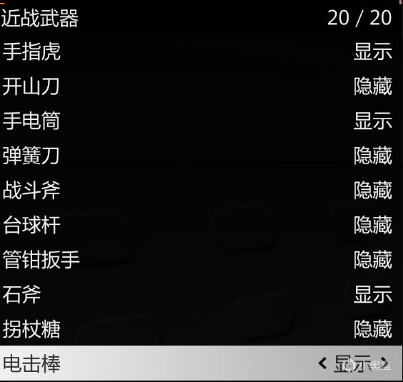 請注意,電擊棒可在您的武器庫中隨時隱藏。