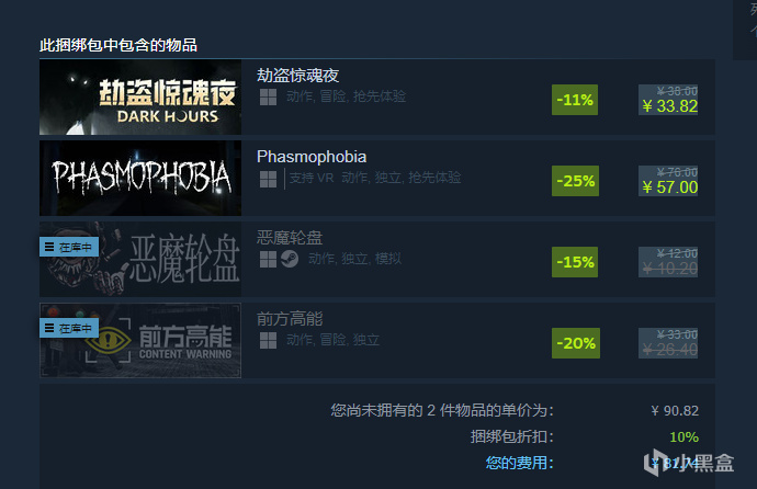 隆重推出:“SPOOKY BUDDIES 恐怖夥伴包“——內含《Phasmophobia》《Content Warning 前方高能 》和《Dark Hours 劫盜驚魂夜》!