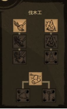 右邊是技能樹精守衛代木者1,2,3級,1,2級分別提供對樹精守衛的增傷41.4點和100點。三級能製作樹精守衛雕像,把樹精守衛雕像丟到地上再點燃,會輕換兩棵樹變成樹精。