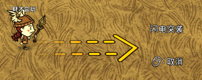 奔雷矛分支技能,第一個技能是1級奔雷矛加強,手持奔雷矛或充能奔雷矛時,點去鼠標右鍵可以進行閃電突襲,對突襲路徑上的所有生物造成85點傷害,衝刺最多6.5個距離衝刺不會消耗耐久,有3秒的冷卻時間。