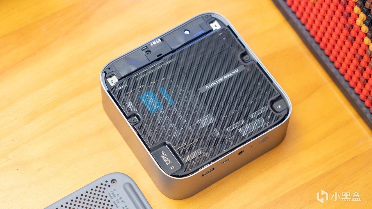 底部設計了雙層防塵設計,底部首先是一側塑膠底座。整機拆機升級並不複雜,另外也有裸機版本,手裏有內存和SSD的玩家可以方便選擇。