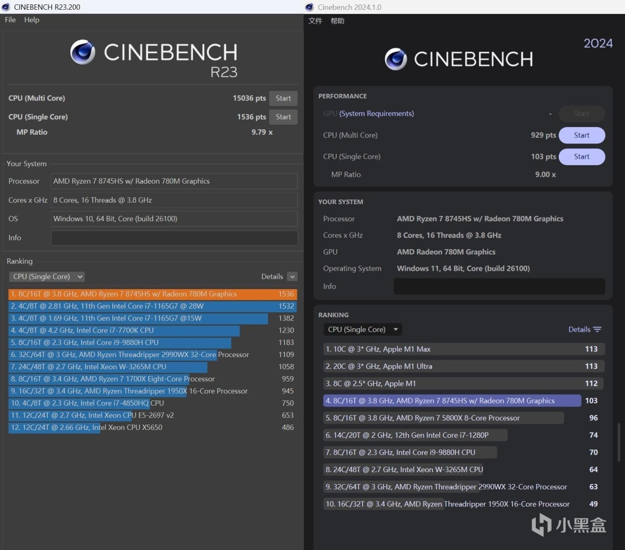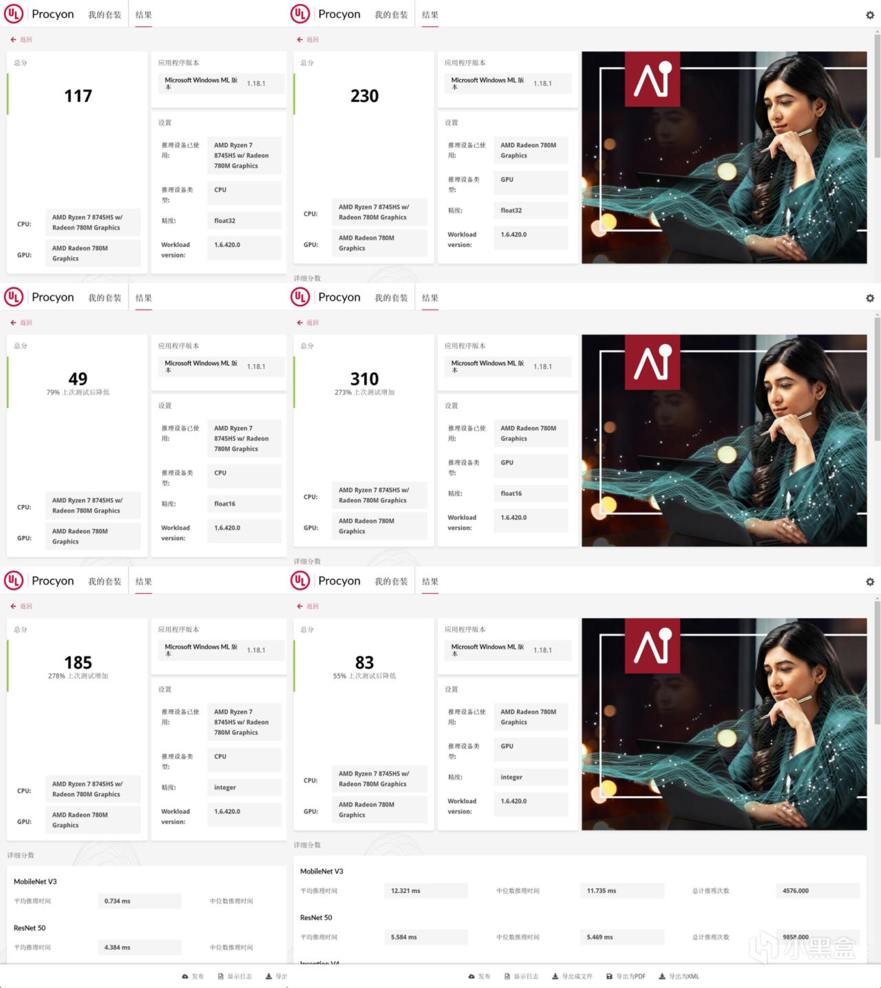 雖然這顆8745HS相比8845HS沒有了NPU但是如果不是搭建完整的AI測試模型其實更多時候780M顯卡也可以提供足夠的支持。這裏也對比處理器和顯卡的性能測試給大家參考一下。