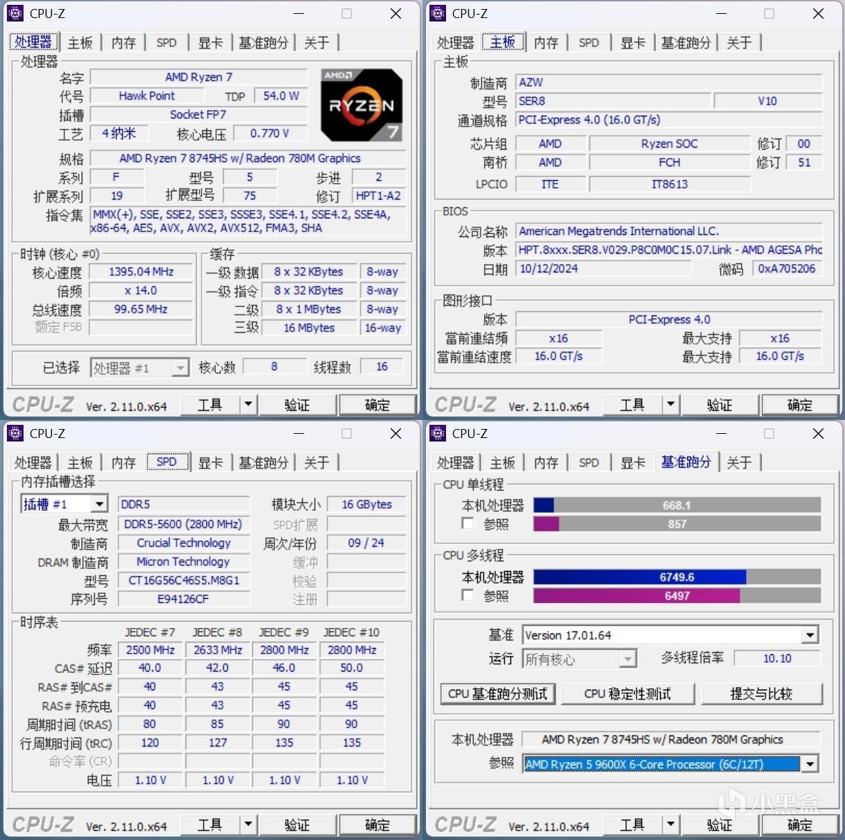 這裏也通過性能測試對比一下這款便宜了500元的SER8 8745HS與SER8 8845HS性能是否有差異呢?