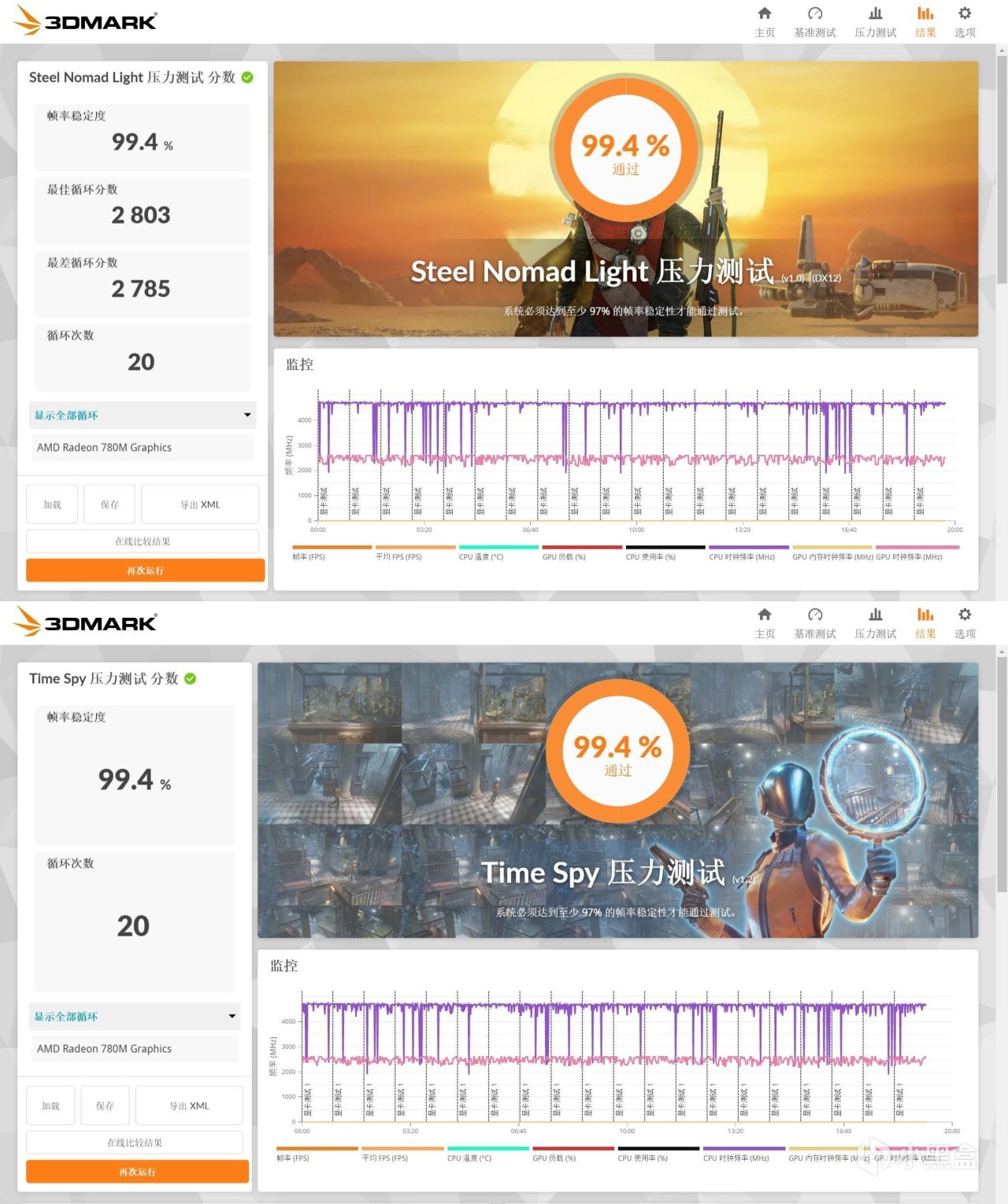 此外面對3D Mark的壓力測試,不論是針對顯卡的Steel Nomad Light壓力測試或者Time Spy壓力測試零刻SER8 都順利通過。說明整體設備穩定性自然是沒問題的。