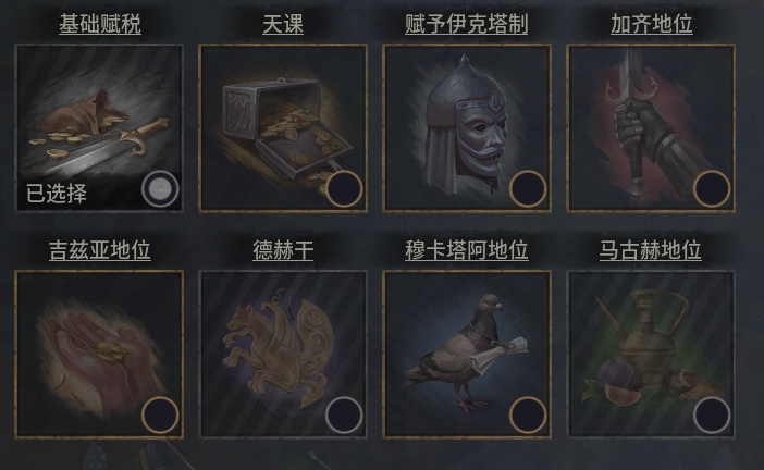 氏族制封臣的賦稅比例根據徵稅法令變化(我不太玩氏族制,不太懂這個選什麼法令比較好,懂得大佬可以在評論區教教大家