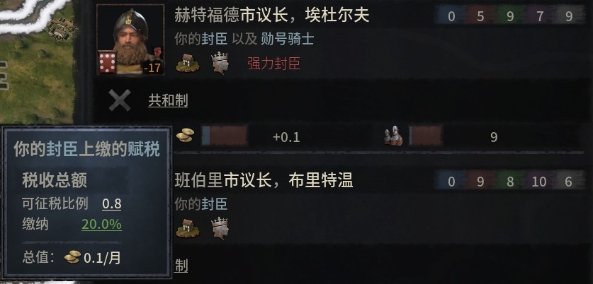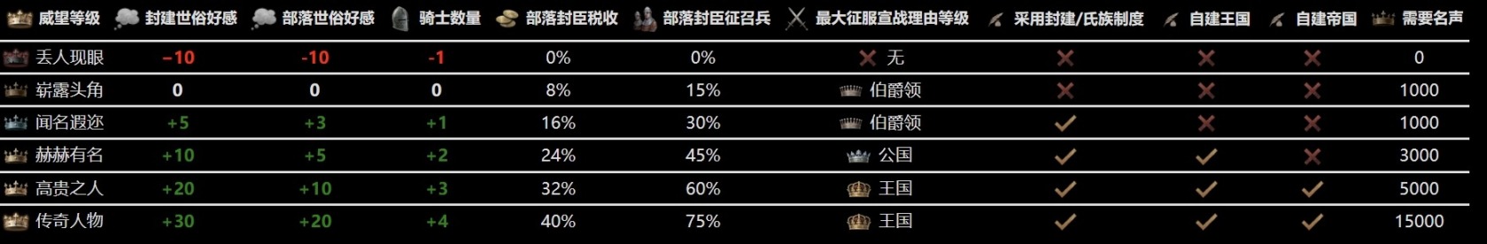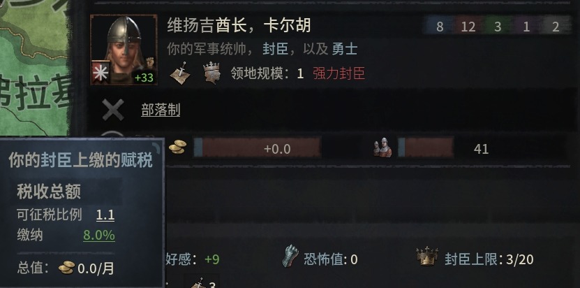 部落制封臣的賦稅比例根據領主的威望等級浮動