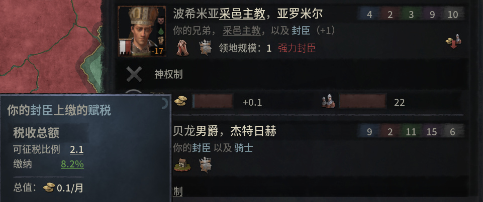 神權制封臣的賦稅比例根據領主的奉獻等級浮動