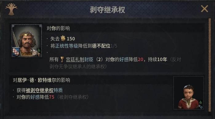 作爲家族組長,我們能夠直接剝奪宗族成員的繼承權,使得其無法繼承任何頭銜,一勞永逸的避免頭銜被瓜分