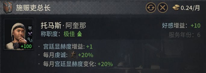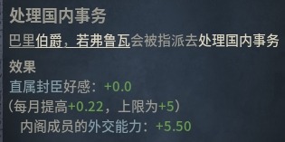 我們可以讓外交總管執行處理國內封臣關係的內閣任務,特別是在對外戰爭之後,封臣會有一個對外戰爭的減好感debuff,我們可以通過這個方式來降低這個時間段的好感懲罰