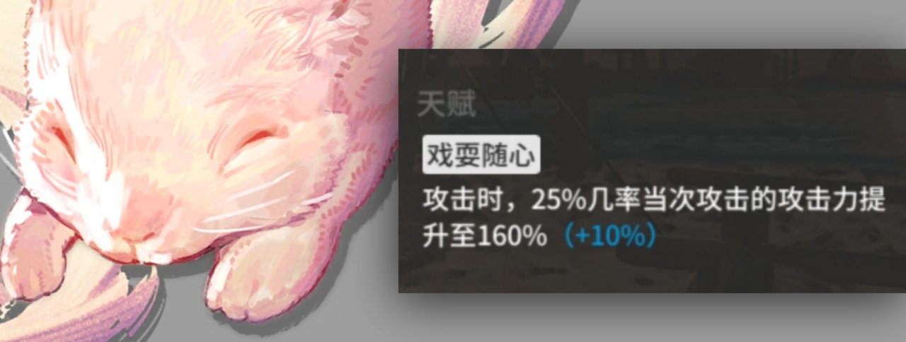 3×5的攻擊範圍,攻擊遠距離敵人時攻擊頻率下降,近距離攻擊時享受最快1秒攻速,既“手長”也“手短”,天賦平a概率暴擊,常見且實用的效果,平a最大傷害688×1.6≈1101