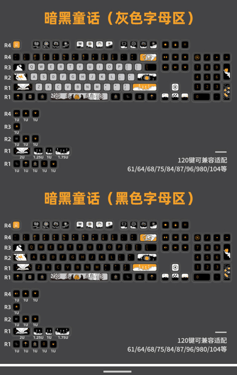 拾光龍 ASA高度 透光鍵帽暗黑童話 頂面PBT熱昇華工藝(四周黑色透光) 120鍵 199元預售從12月24號至1月4號,預售結束後三天內發貨