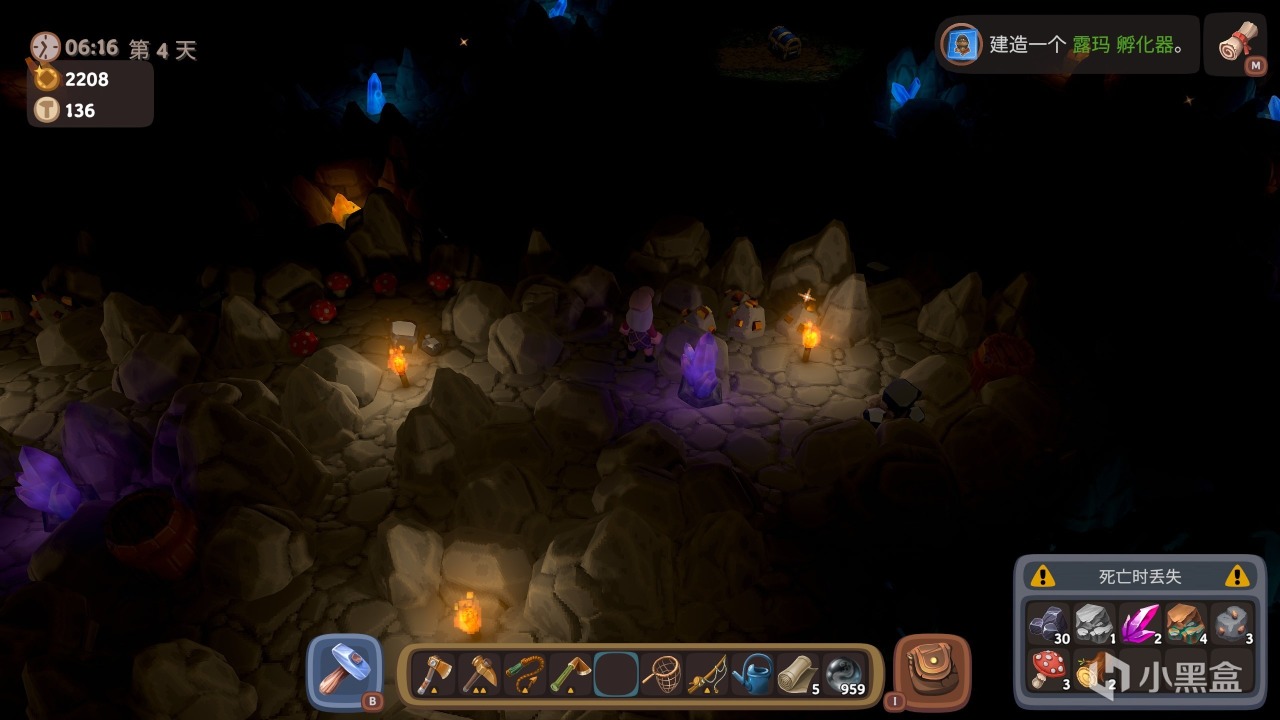 PS:一般種田遊戲都會強制睡覺,不會在這款遊戲你可以不睡,但是入夜之後NPC都睡了,也沒法完成買賣,只能挖礦做材料