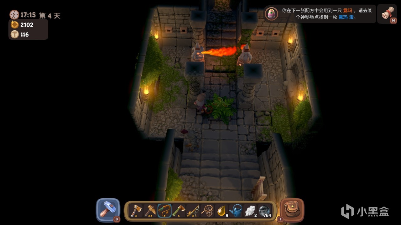 讓人dokidoki的探險挖礦之外,遊戲還佈置的大量的寶箱來給予探索更多的驅動力,寶箱包含了大量塞爾達風格的解謎——其中除了大量的材料,還會包含大量“跳科技”的素材和錢幣,如果你想要在5天內體驗到更多的後期內容,或許做一個“寶箱獵人”會是不錯的選擇。