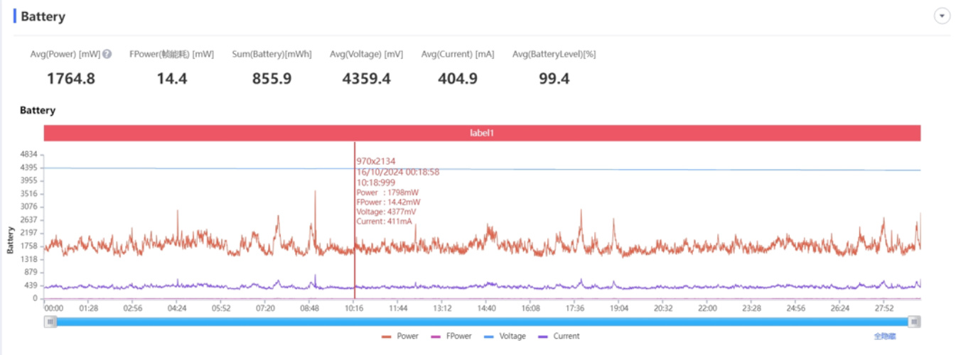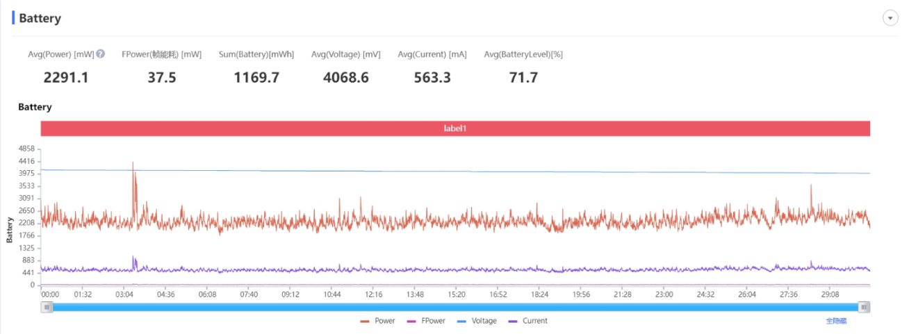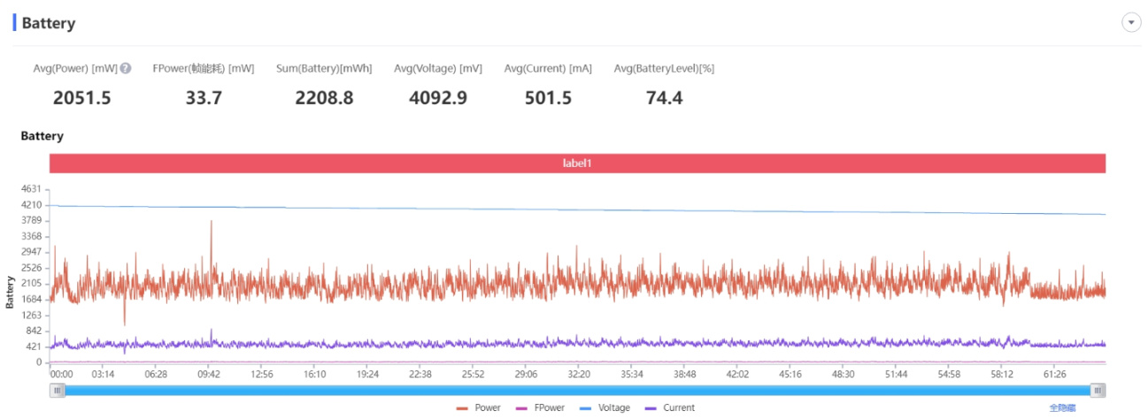 由於iQOO13是雙電芯設計,因此PrefDog統計出的功耗要乘2纔是真實功耗,iQOO13在半小時王者下的平均功耗只有3.4W,表現非常優秀。