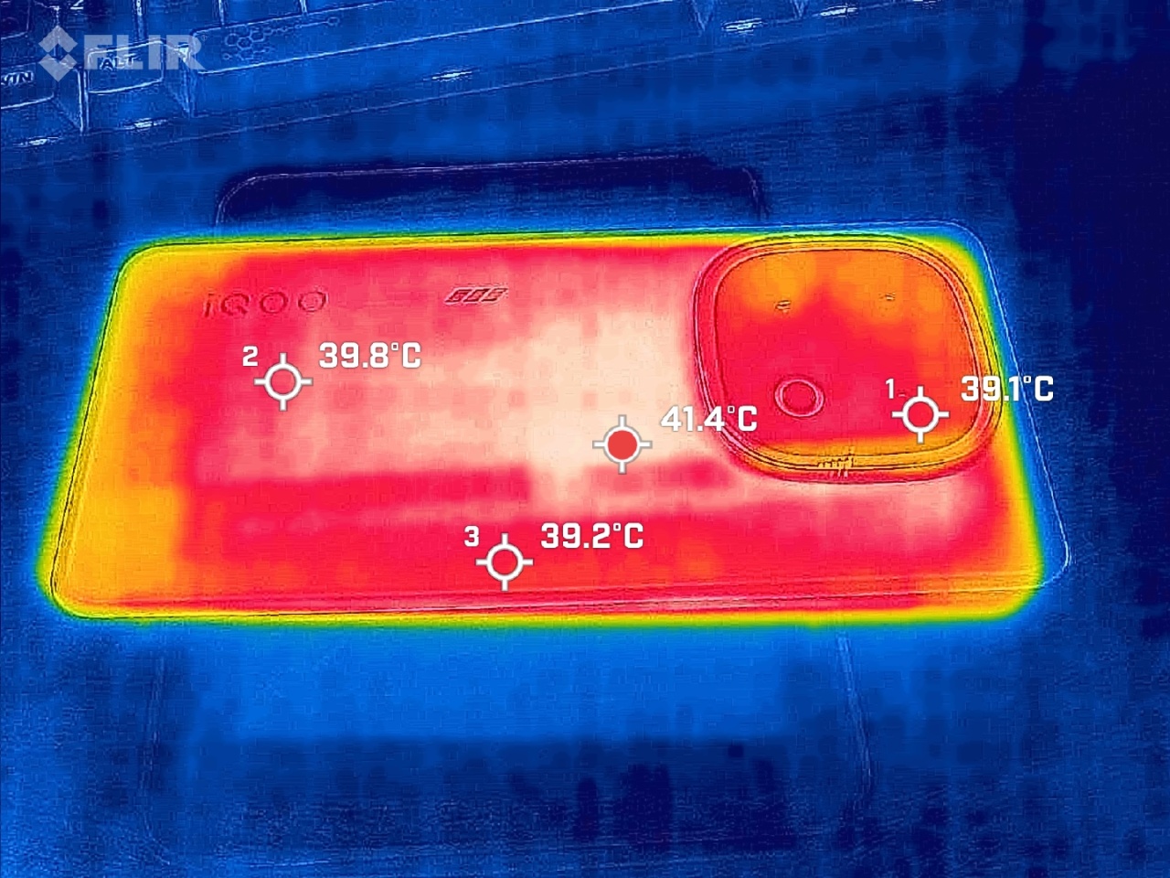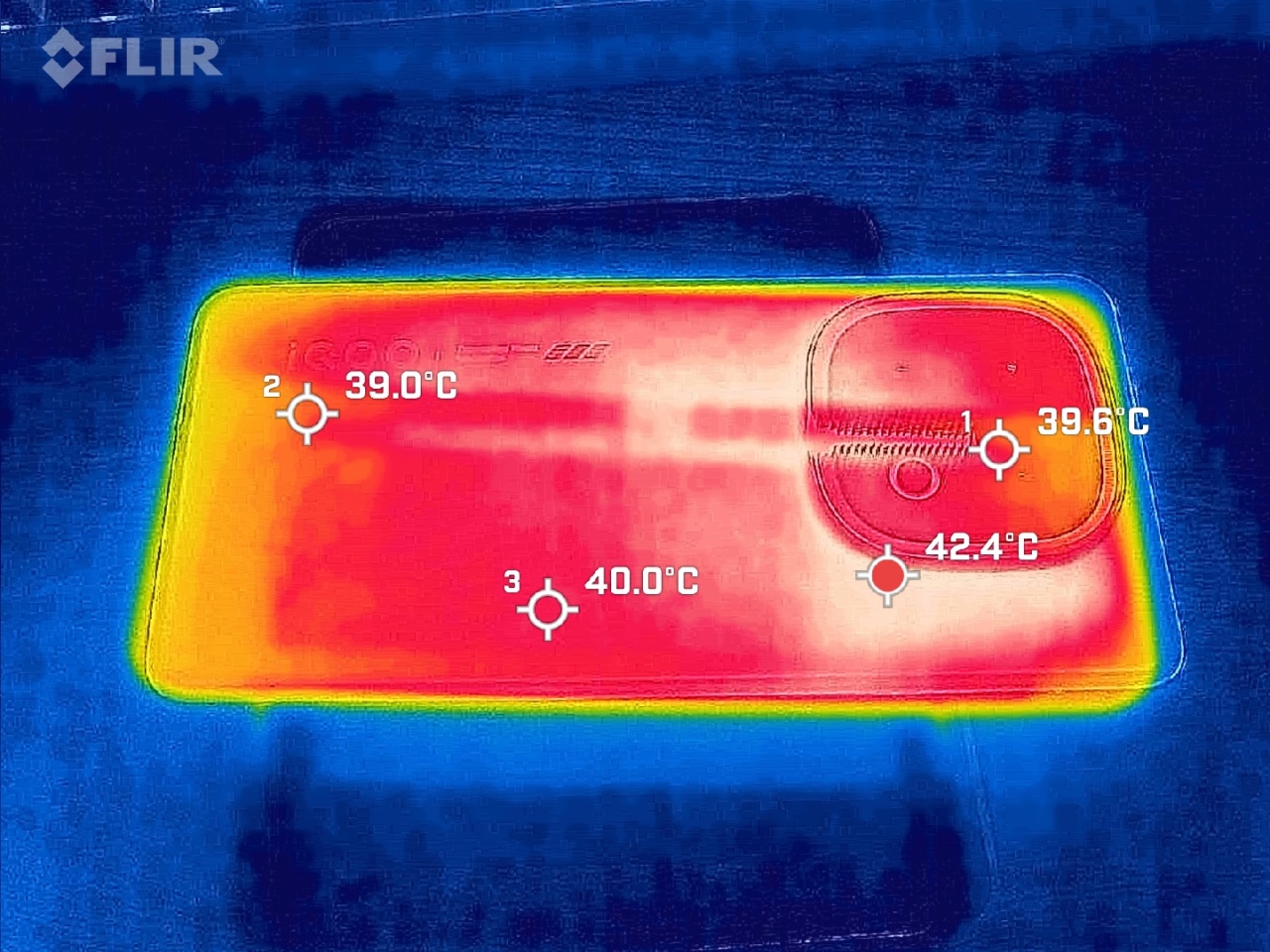 此時機身溫度也控制的十分得當,畢竟3.4W的發熱量對iQOO13來說根本沒有難度。機身背板只有40.4°C,體感只是溫熱而已。