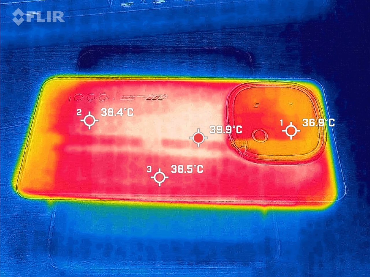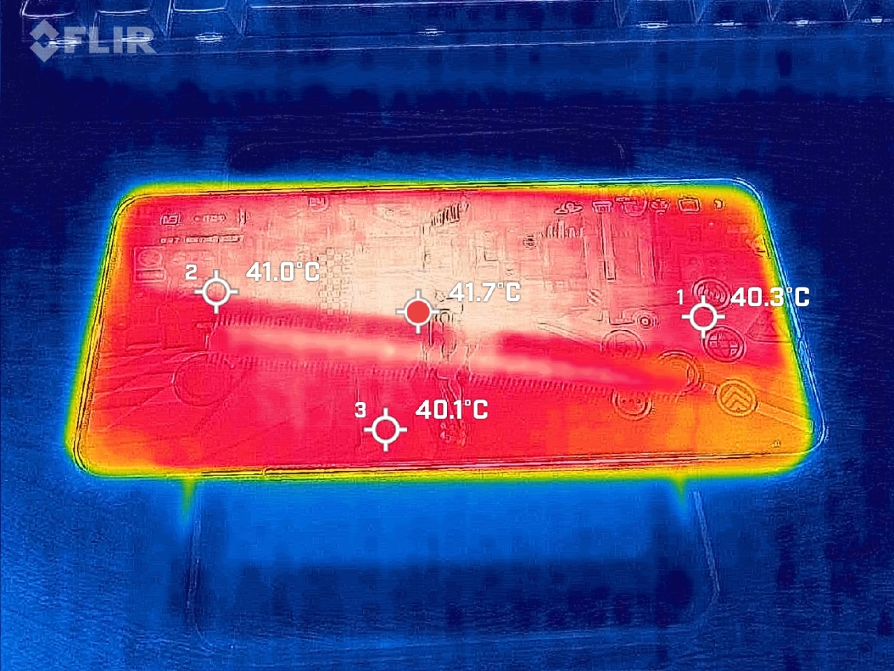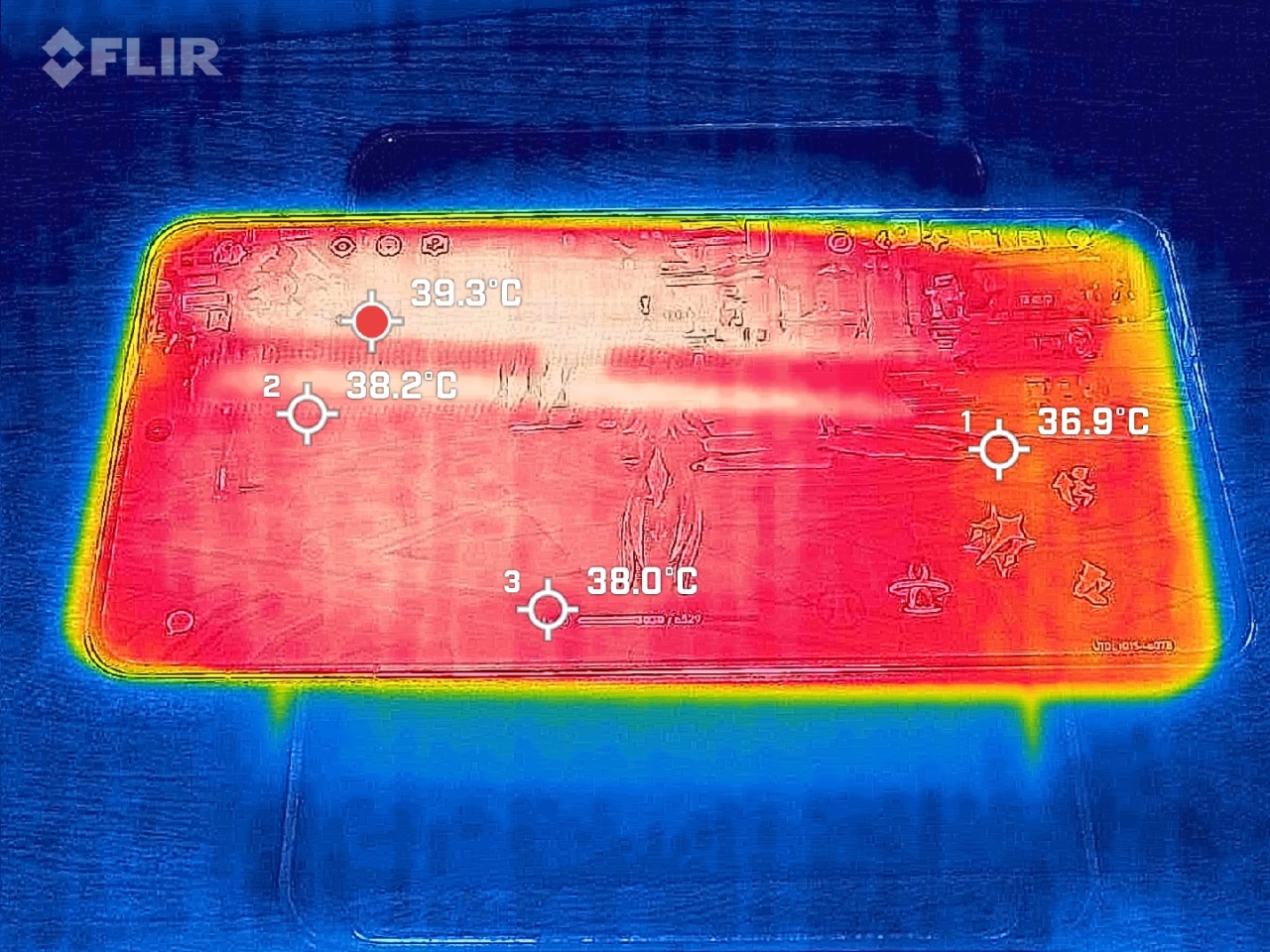熱成像看溫度可以發現即使是半個小時的原神,機身溫度最高也只有39.9°C,沒到40°C,體感會有一點點的溫熱。