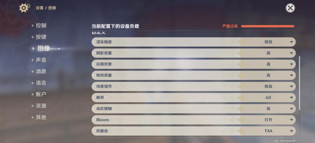 首先進行一個數毛,在iQOO13上,原神的默認分辨率是810P,比安卓這邊默認的720P要高不少,但要比iPhone 16PM的864P分辨率稍低一些。