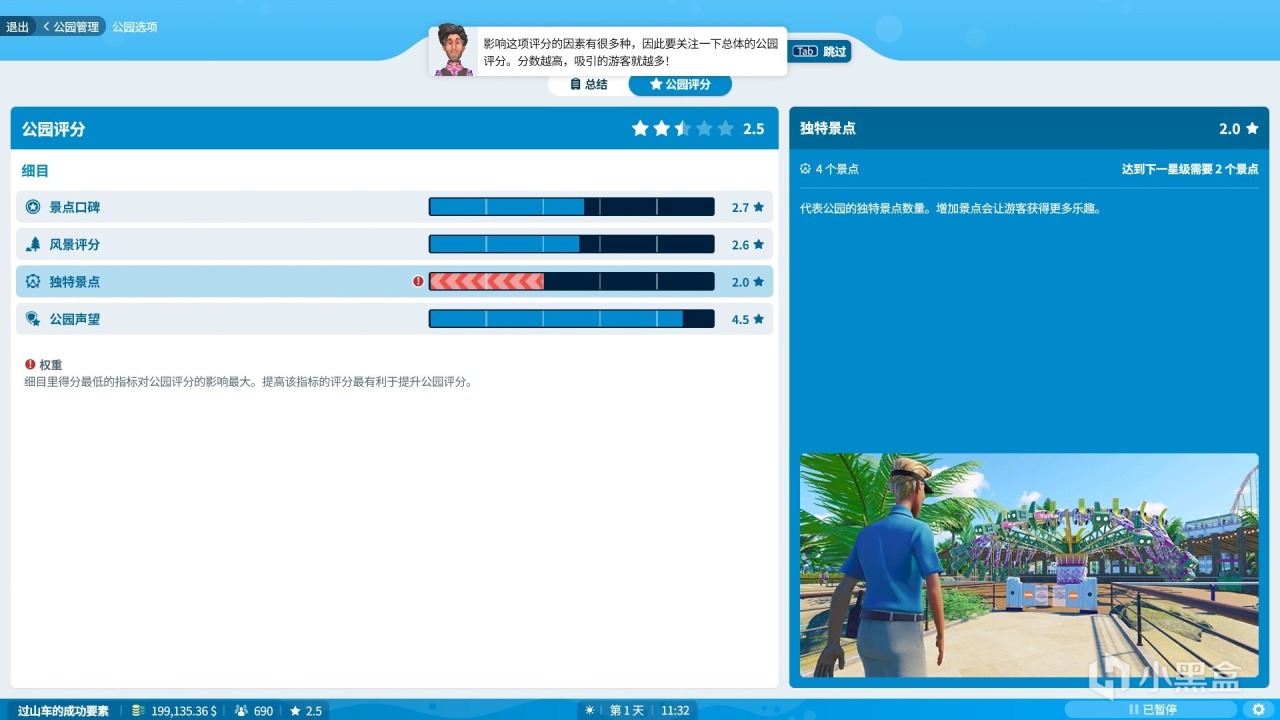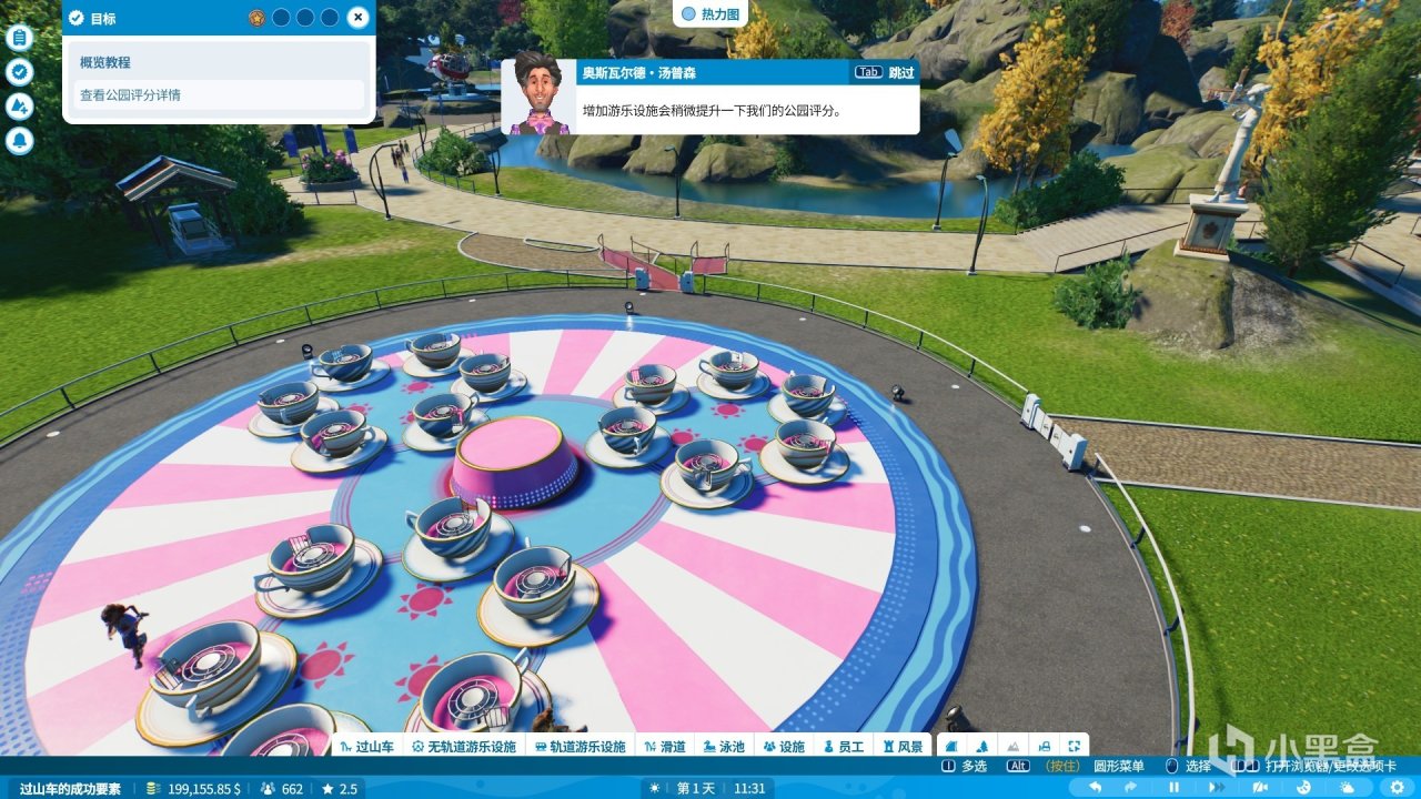 除此之外遊戲的生涯系統也進行了全面的升級。內容也變得更加豐富。真正的手把手教學,而且遊戲還支持中文文本和語音,一定程度上也增加了我們的代入感。雖然可能中文本地化有點生硬,不過至少不用滿屏幕去找字幕看。隨着任務一個又一個的完成,我們的成就感也會增加不少。通過一系列的任務讓你作爲園長的熟練度越來越高,直到成爲一個真正的遊樂園園長。不只是生涯模式,沙盒模式同樣的有趣。