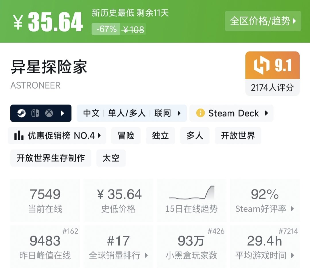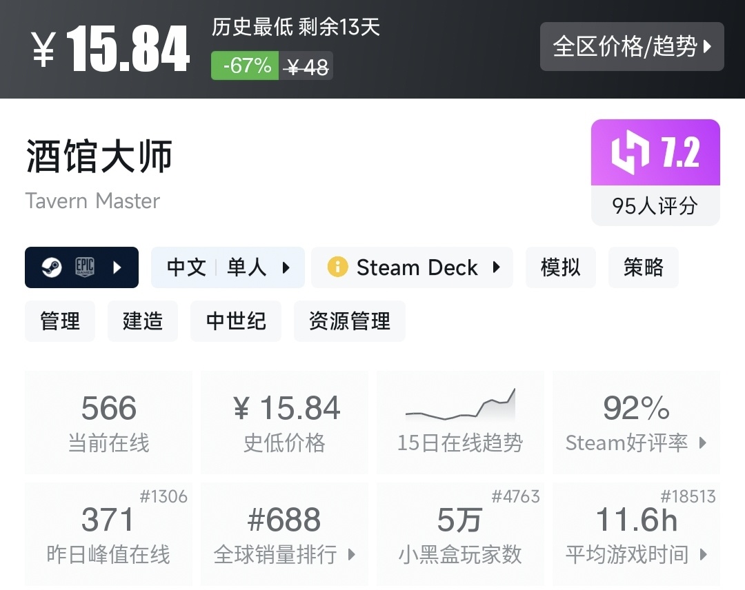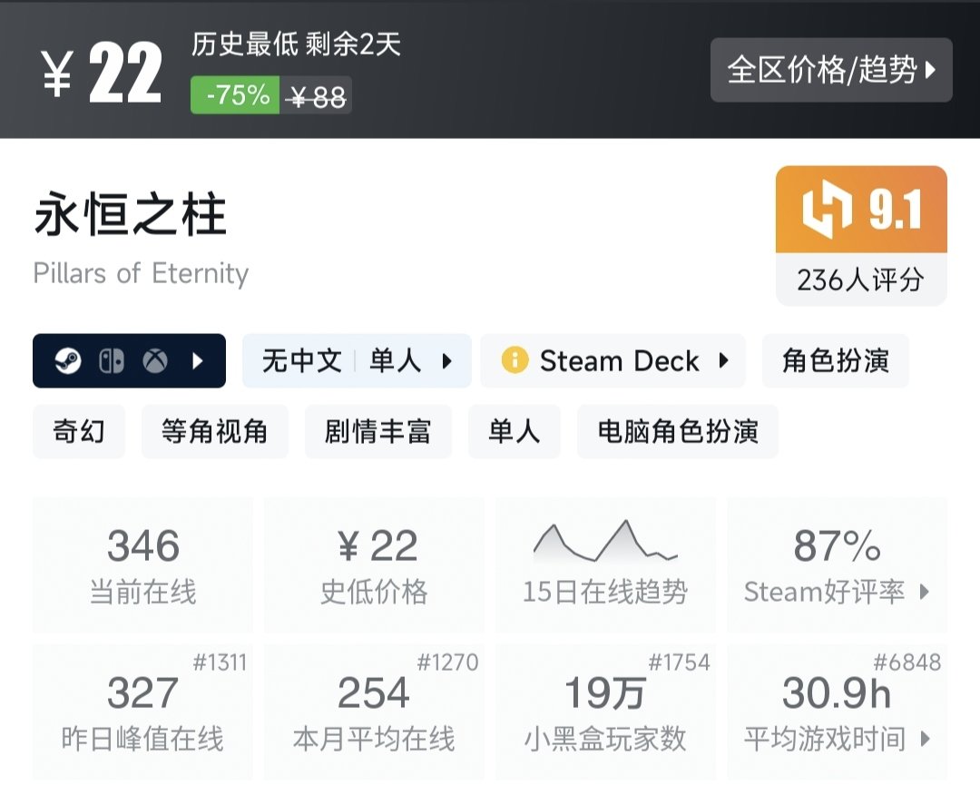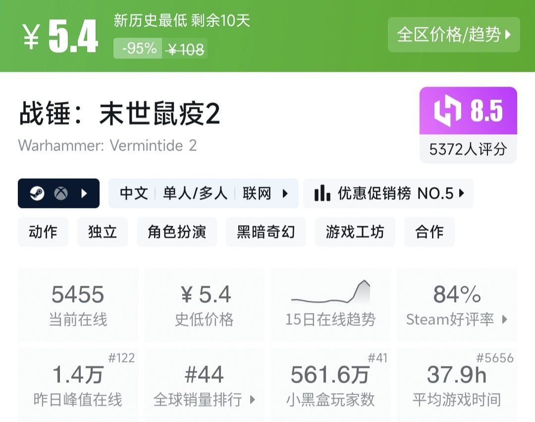 11月16日Steam特惠,10款好價好評遊戲一覽