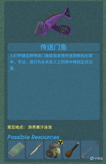 分佈:西部製造的異界果汁池,實驗室水族館的魚缸,傳送門園地遠端。