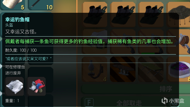 釣魚帽,增加釣魚經驗和稀有魚概率。