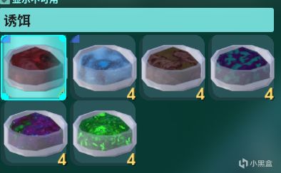 並不是所有魚都有魚餌,一共有六種魚餌,分別在釣到對應的魚時候獲得配方。