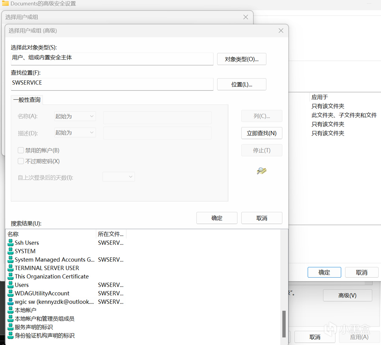 如果知道自己的賬戶的“對象名稱”(不是賬戶名)也可以直接輸入,這裏爲了省事就直接查找了