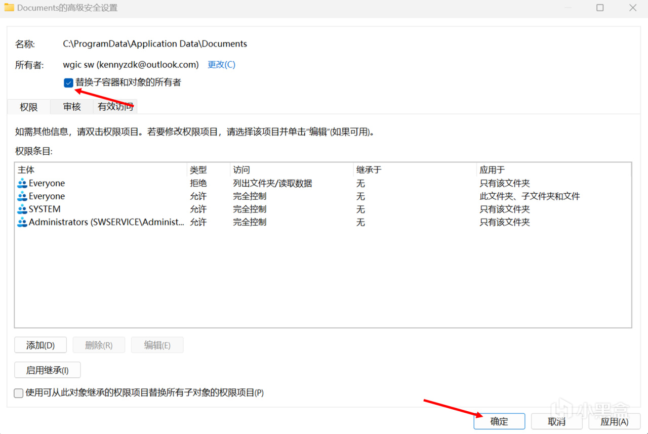 最後關閉所有打開的設置窗口(忽略可能的錯誤彈窗),即可擁有該文件夾的最高權限