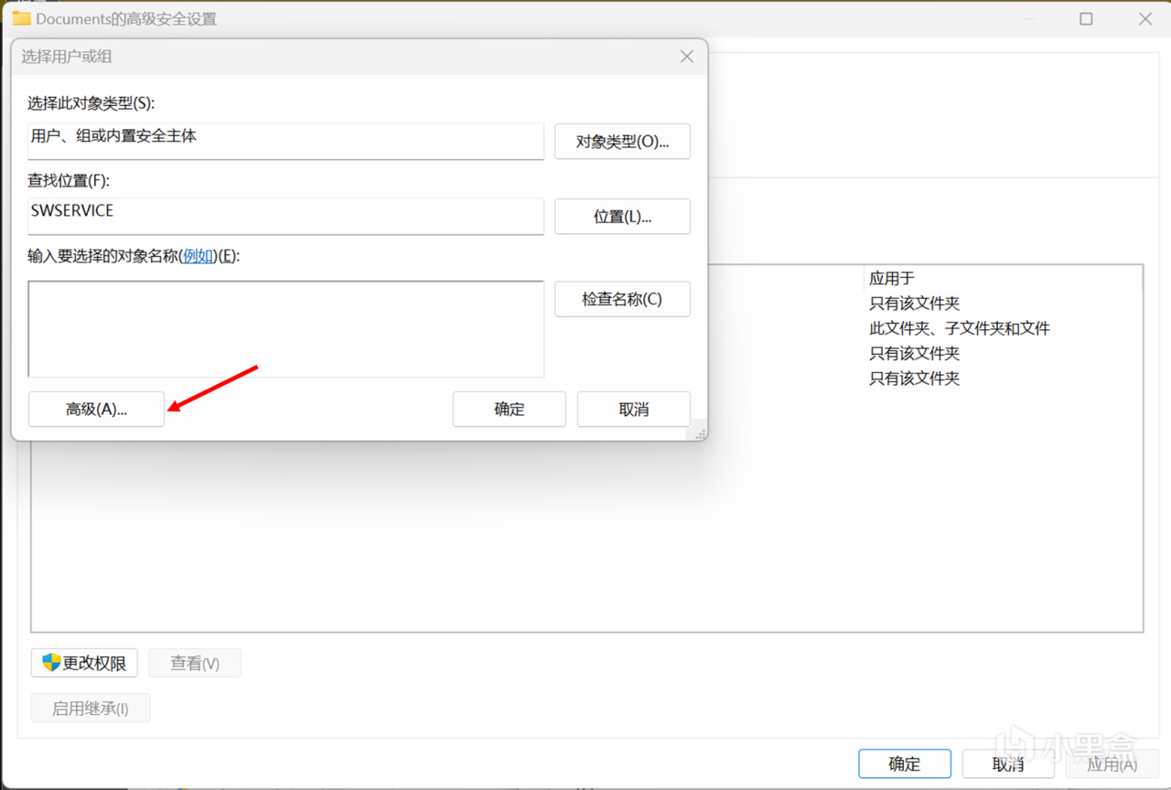 再切換到“安全”選項卡之後不要點“編輯”,而是點“高級”,否則很可能仍然權限不足