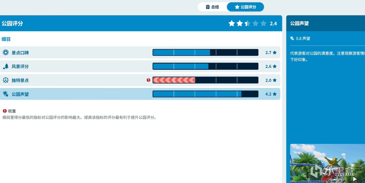 當然風景的建設也會給樂園增加評分,每個指標的評分都會都會對公園的名氣造成一定影響。而名氣也會伴隨這公園設施票價的漲幅,在前期玩家們肯定是推薦“優惠票”來拉一波好感,從而打開樂園的遊客數,如果資金充足還能讓樂園登上電視欄目。