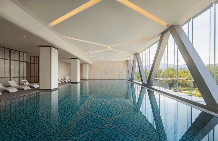 🍀硬件:2023新開業,洗衣機烘乾機健身房泳池都很新,最小面積的高級大牀房41平。泳池(p6-7用的官圖)