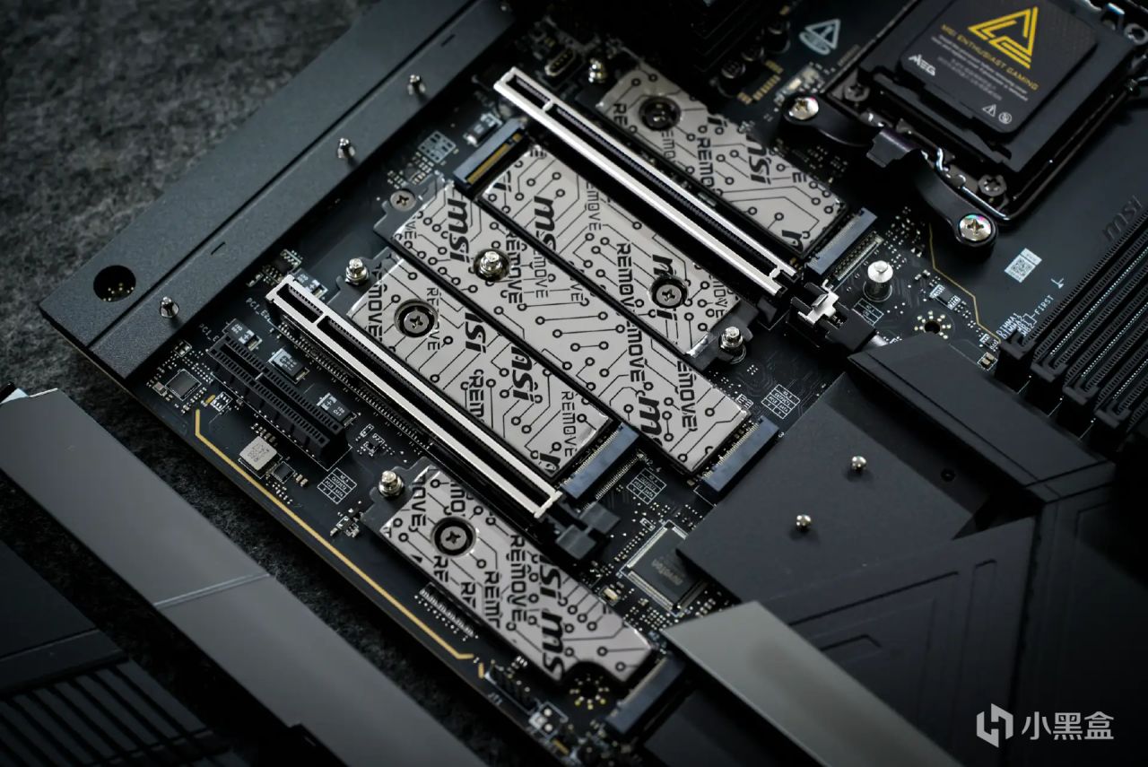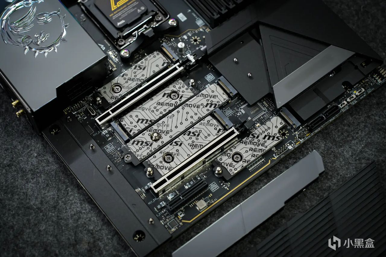 全部打開後一共可以看到微星MEG X870E GODLIKE超神主板搭載了5個M.2插槽。