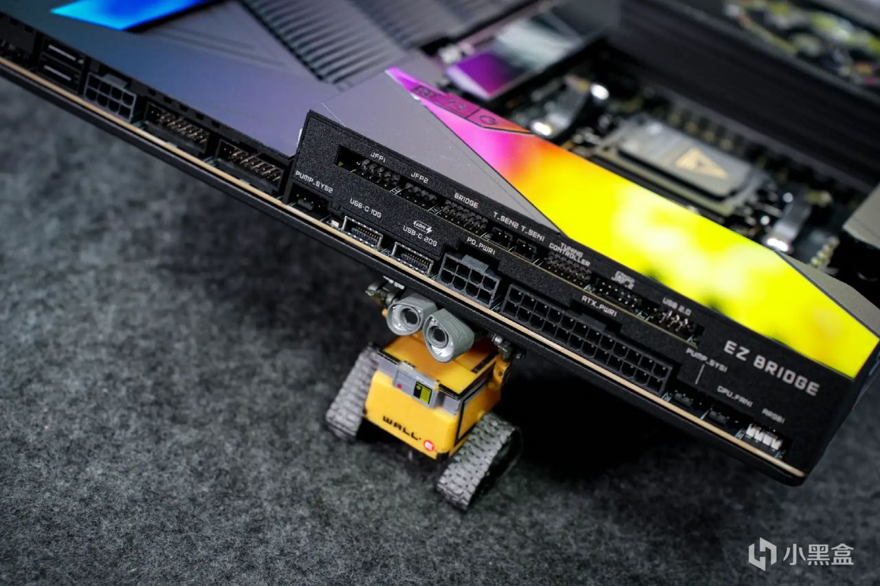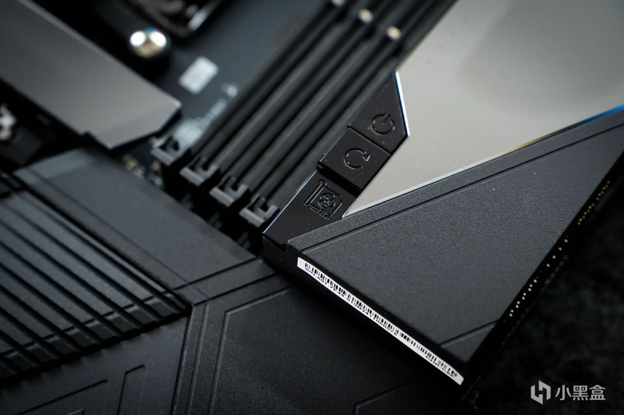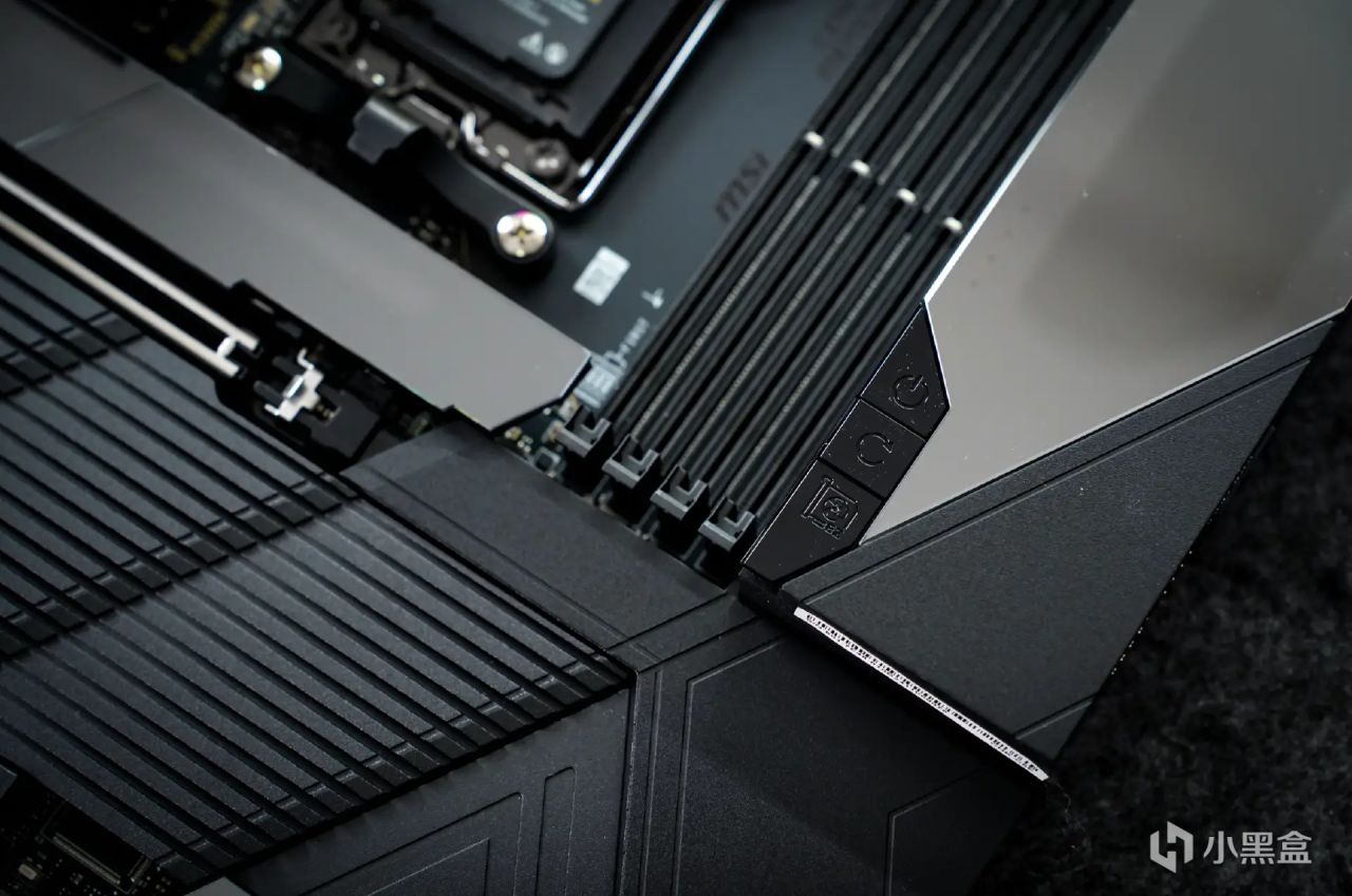 主板的右側還有2個SATA接口,用於用戶拓展傳統機械硬盤。不過爲了主板的整體美觀,微星的工程師還在散熱模組上設計了一個磁吸模塊用於遮擋。
