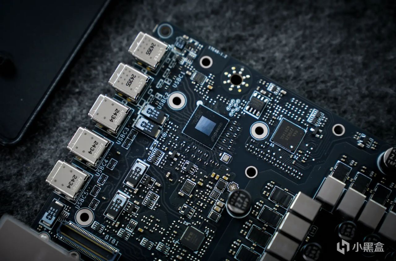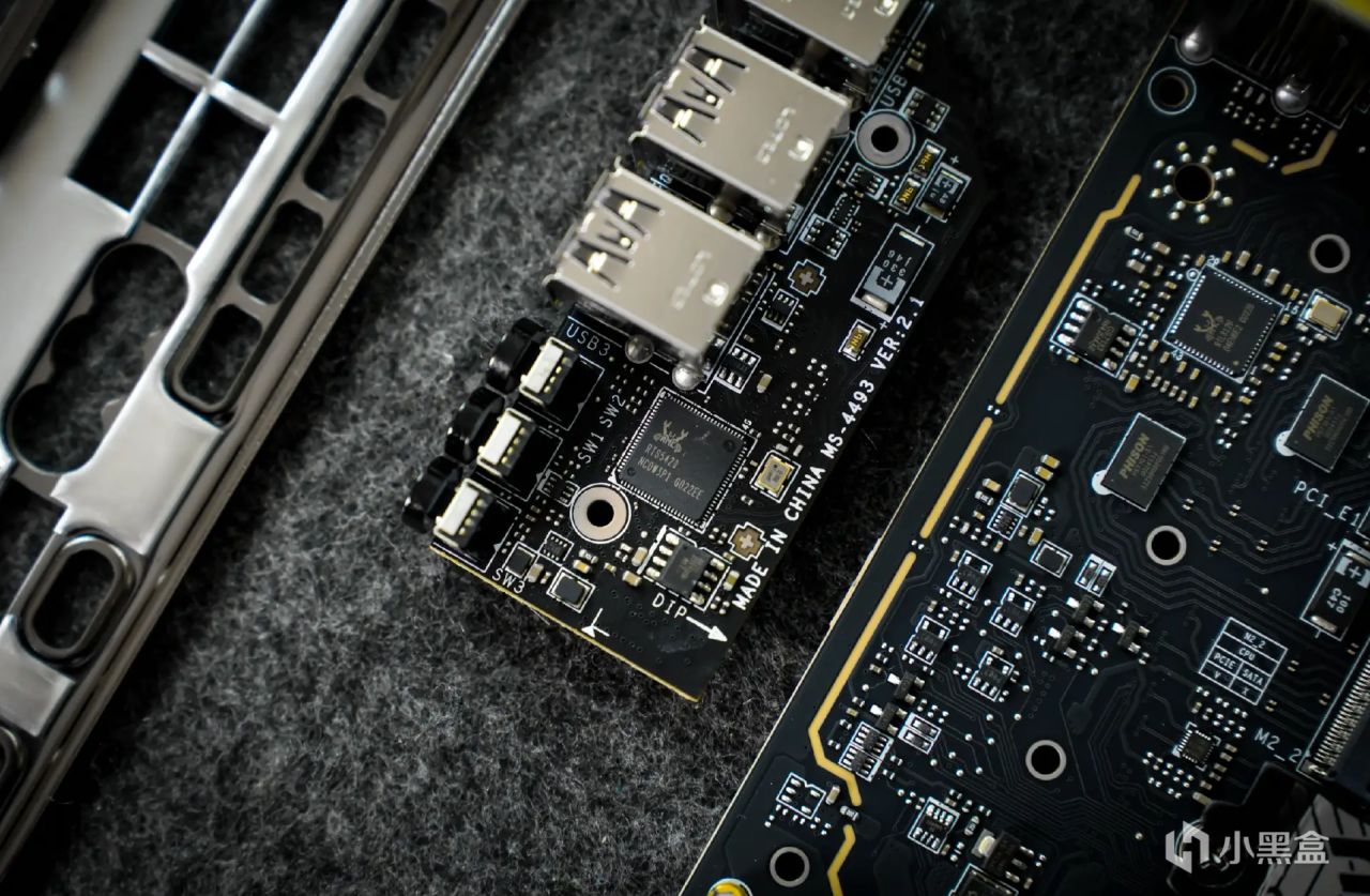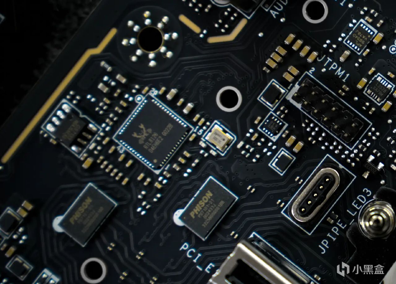 主板的右上角是一顆有祥碩ASM4242芯片,主要是提供兩個USB4 40Gbps接口,並且兼容USB 20Gbps、雷電3、雷電4等規範,支持DP 1.4a規範的視頻輸出。