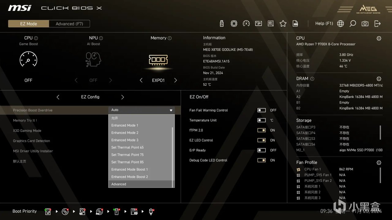 比如在BIOS下可以快速的進行PBO和內存EXPO設置,不用在進入高級模式。