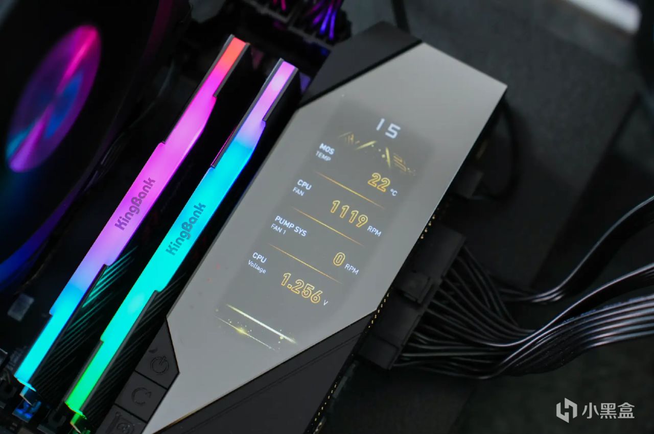 至於在內存的右側則搭載了一個小盒子。可能有的小夥伴覺得它是一個M.2硬盤倉,但實際上它是第三代的龍魂動態面板。