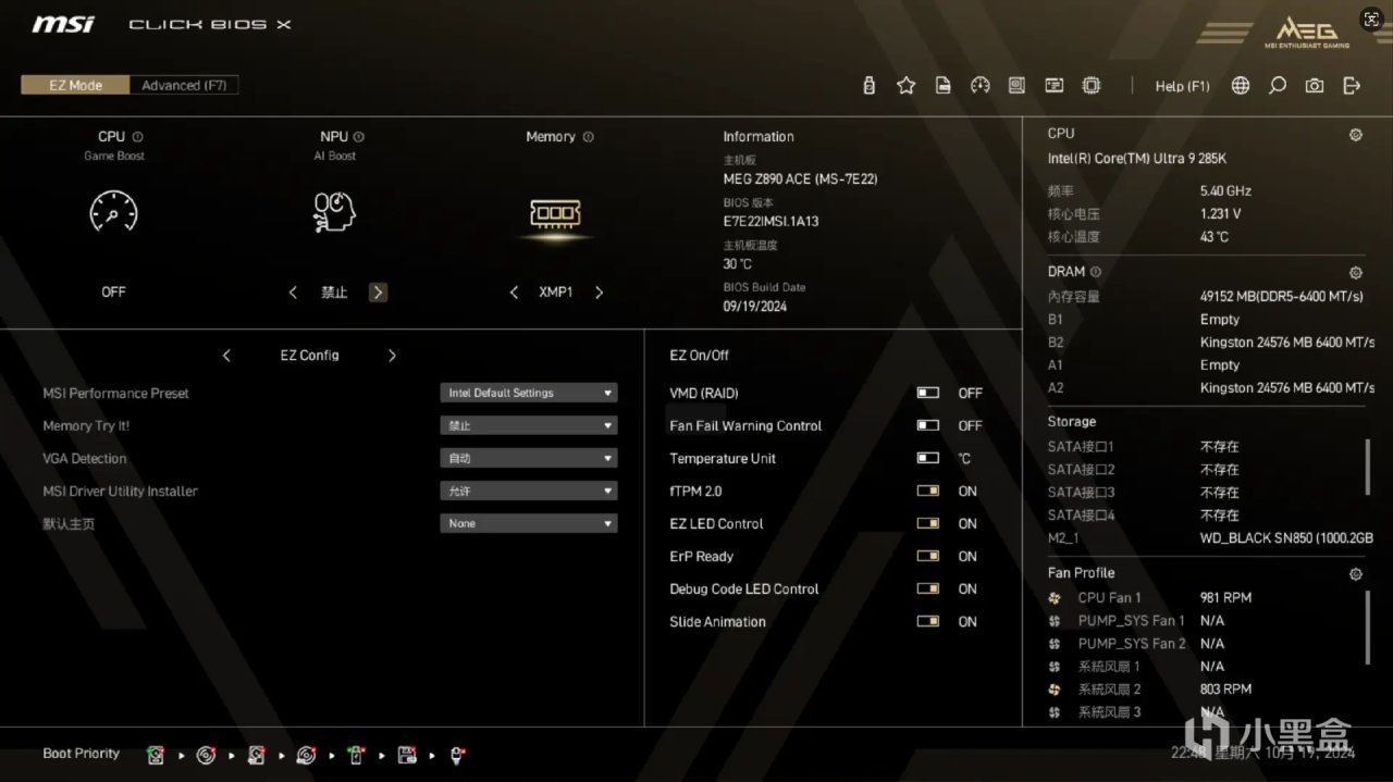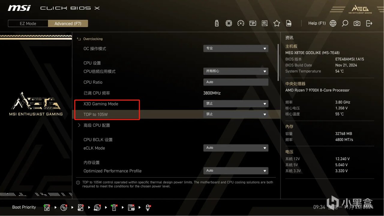 微星MEG X870E GODLIKE超神主板搭載的是最新的CLCIK BIOS X,這裏也簡單介紹一下,其採用了新ESA架構設計、主要是優化整個UI,增強了用戶體驗、操作也更方便。目前最新的BIOS版本是E7E22IMS1.1A13(BETA版本)。